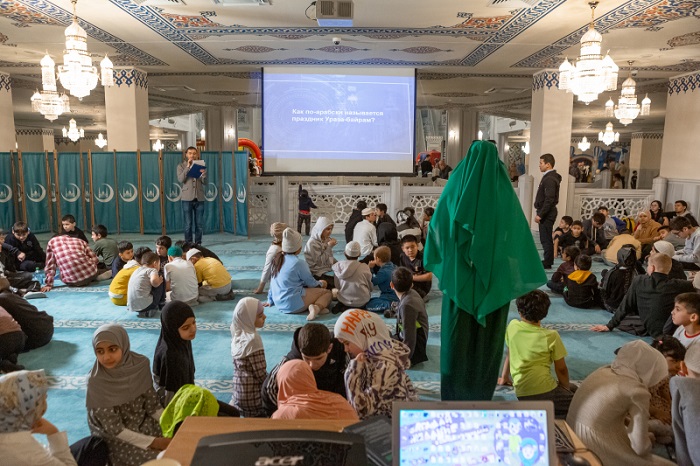 Праздник проходил одновременно на нескольких площадках и в нескольких форматах. Дети смотрели познавательный анимационный фильм, участвовали в интеллектуальной игре «Поиск», проходили занимательный квест, который помогал им выучить имена Аллаха, научиться читать намаз и, конечно же, найти заветный клад.