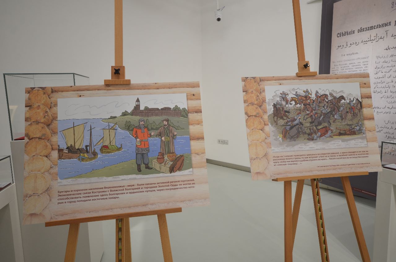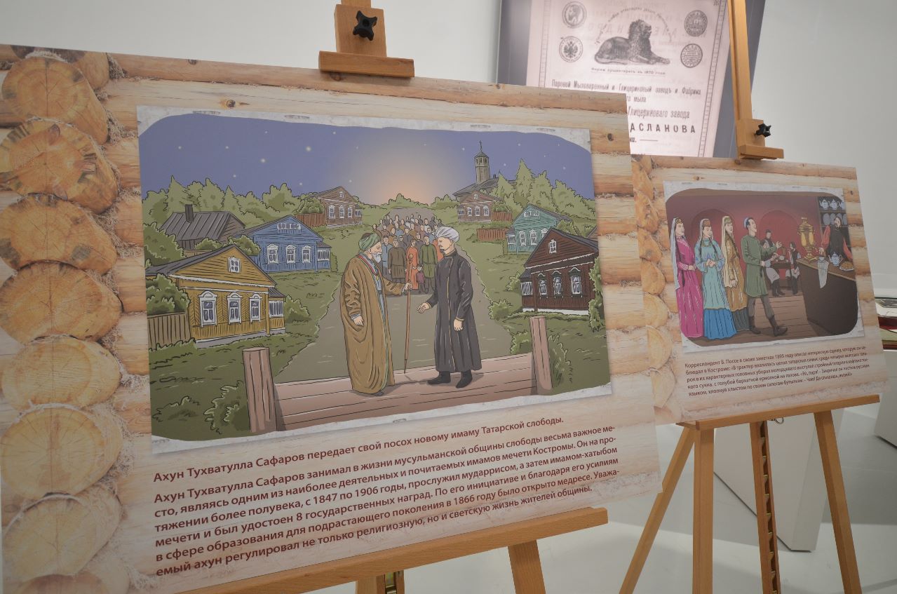 В рамках презентации также работала выставка «Мерясь – Наследие», красочно рассказывающая об особой части Костромы – Татарской слободе, существующей на берегу Волги уже более трёх веков, её укладе, мирном проживании в волжском городе русских и татар.