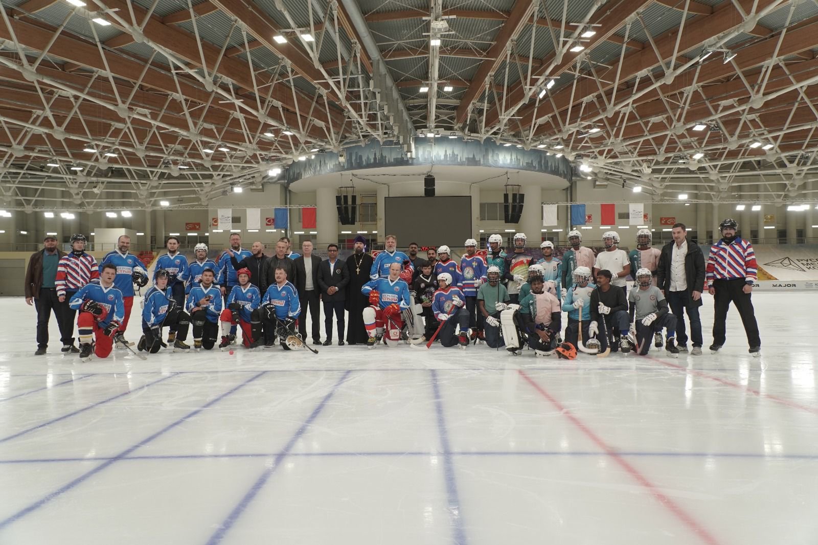 На льду столичного Ледового дворца «Крылатское» в рамках Чемпионата России по хоккею с мячом прошла товарищеская встреча, в которой приняли участие объединенная сборная мусульман и Русской Православной Церкви и сборная Индии. Мероприятие продемонстрировало пример совместной спортивной деятельности и диалога представителей разных религий.
