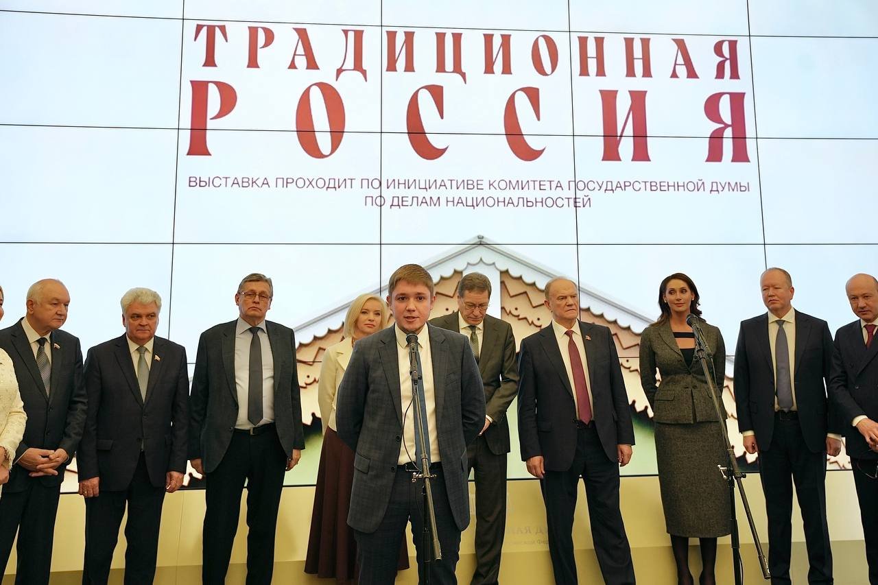 В Государственной Думе состоялось торжественное открытие этнографической выставки «Традиционная Россия». В церемонии приняли участие видные политические и общественные деятели, включая первого заместителя председателя Госдумы Александра Жукова, лидера КПРФ Геннадия Зюганова, председателя комитета по делам национальностей Владимира Иванова, а также представителей науки и образования.