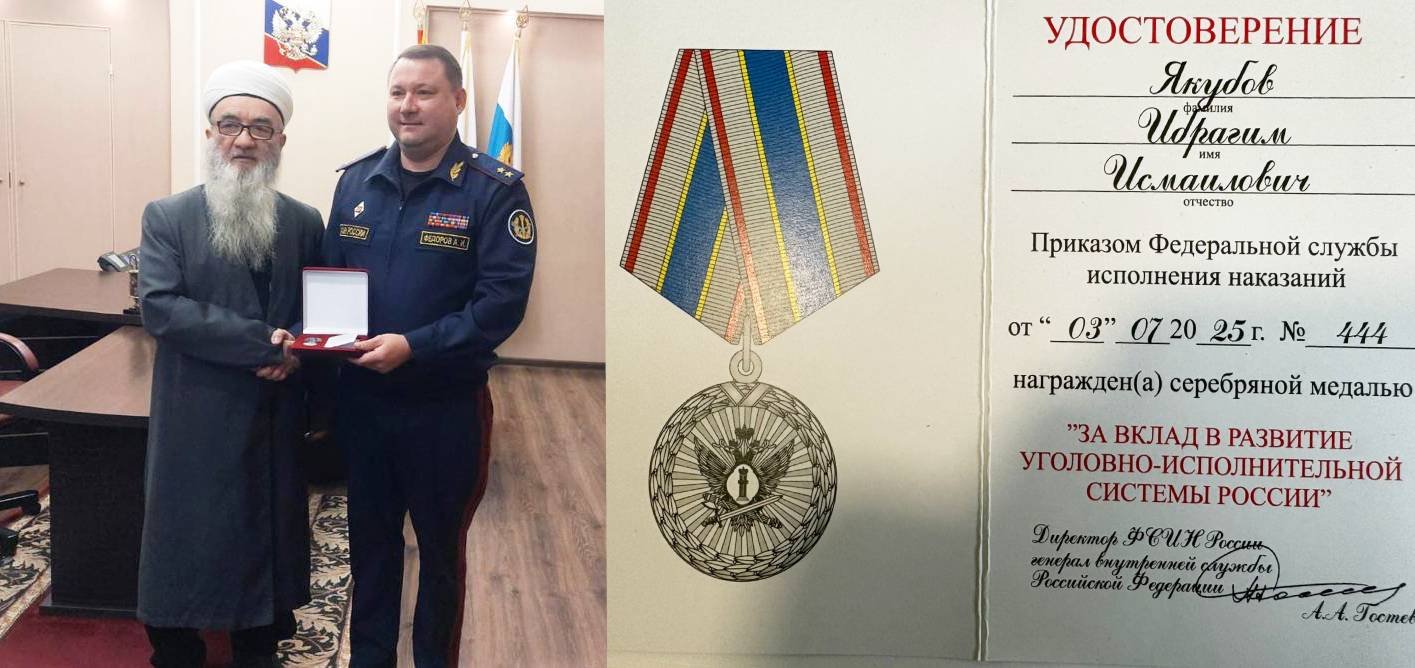 Заместитель председателя Духовного управления мусульман Свердловской области Ибрагим Якубов удостоен серебряной медали УФСИН.