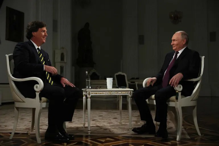 Одним из самых значимых интервью Карлсона после ухода с Fox News стала его беседа с президентом России Владимиром Путиным в феврале 2024 года. Только на YouTube-канале Карлсона это интервью набрало около 20 миллионов просмотров.