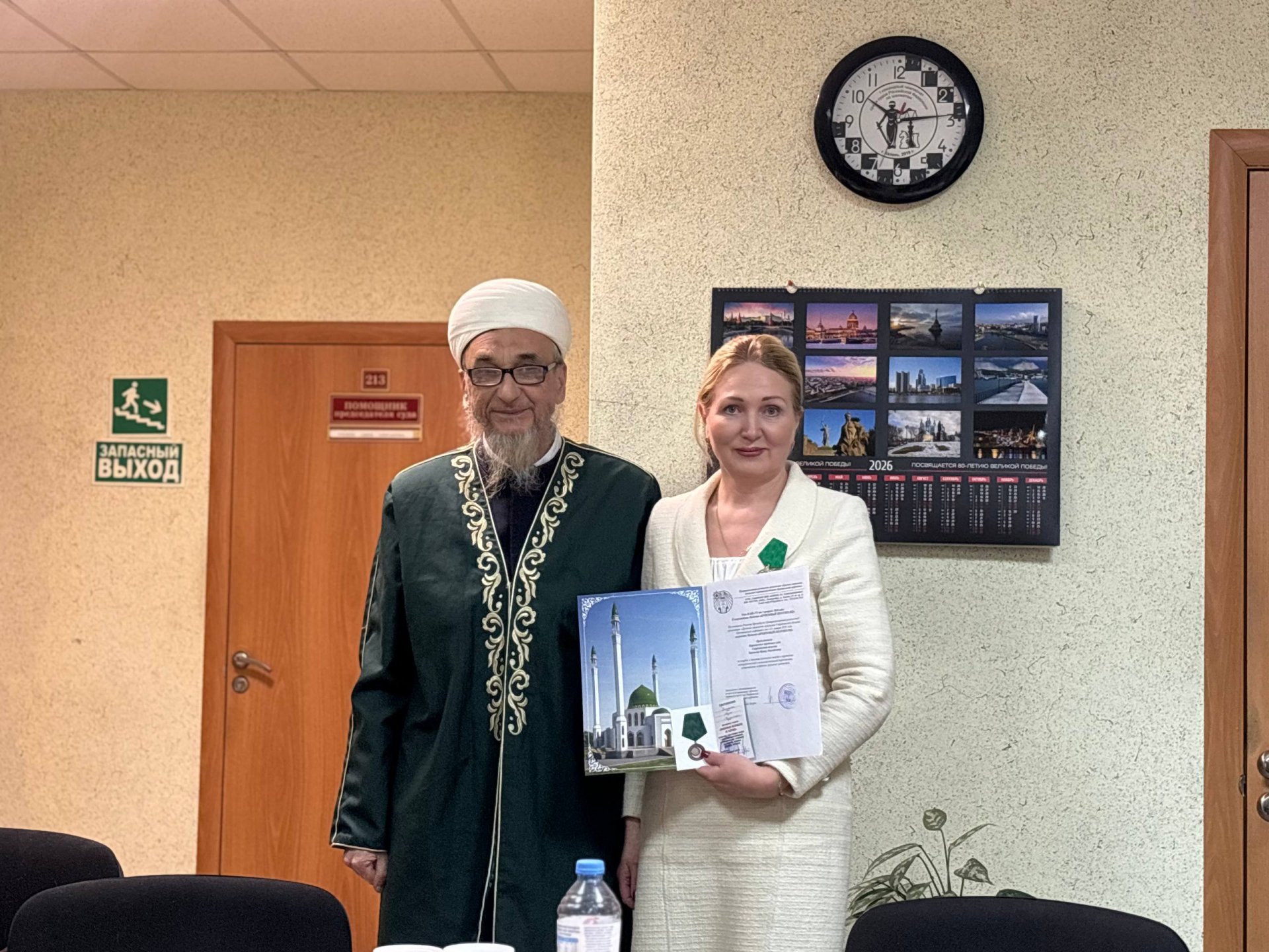 В завершение круглого стола муфтий Абдуль Куддусс Ашарин на основании решения Президиума Централизованной религиозной организации «Духовное управление мусульман» Свердловской области вручил медаль «Бронзовый полумесяц» Ирине Зиновьевой — за значимый вклад в развитие межрелигиозных и межнациональных отношений.
