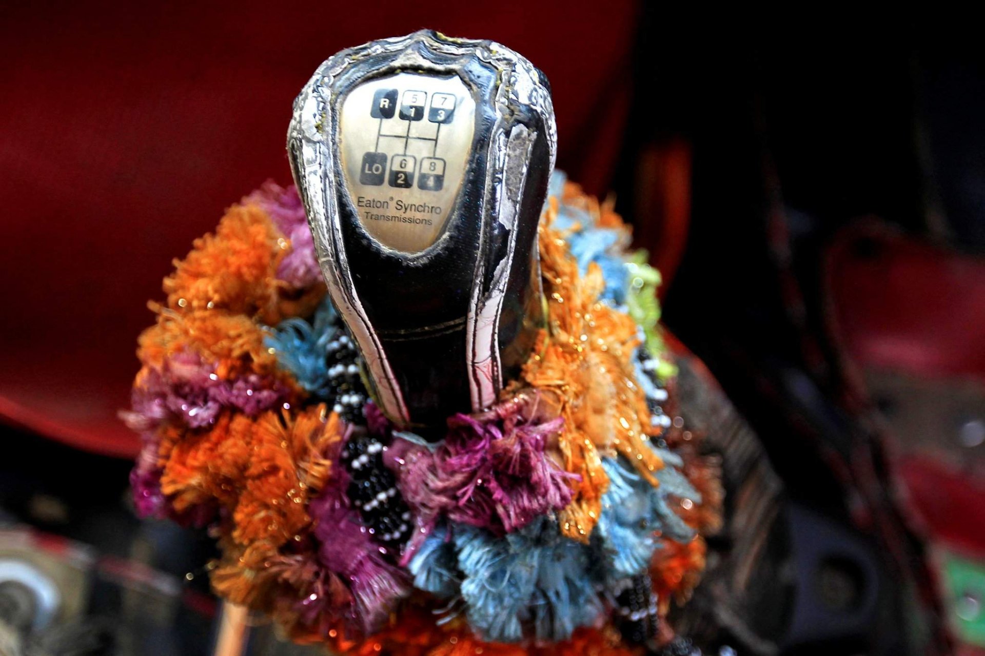 Венчает все это великолепие так называемый «тадж» — деревянная «корона», которую устанавливают над кабиной. Этот элемент не только служит украшением, но и выполняет практическую функцию, защищая водителя от палящего солнца. Двери кабины нередко заменяют на резные деревянные «калитки», а внутри царит настоящий восточный уют: шелка, бархат, подушки, бахрома и множество декоративных деталей, превращающих кабину грузовика в уютное убежище для человека, проводящего в дороге недели и месяцы.