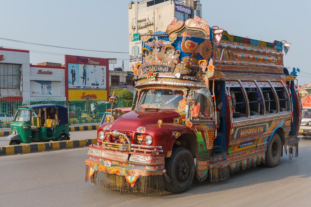 Современная история пакистанского трак-арта началась в 1920-х годах, когда в страну из Англии завезли первые грузовики Bedford. Тогда же появилась и первая автобусная компания, которая столкнулась с неожиданной проблемой: местные жители не спешили переседать с привычных повозок на «железных коней». Решение оказалось гениальным в своей простоте — автобусы расписали яркими красками, и они мгновенно привлекли внимание пассажиров.