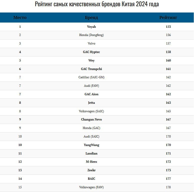 Подобные результаты создают заметный контраст: бренды, которые на российском рынке часто воспринимаются как надежные и выгодные, в Китае получают более сдержанные оценки. Во многом это объясняется высокой конкуренцией и сравнением с глобальными производителями, такими как Toyota.