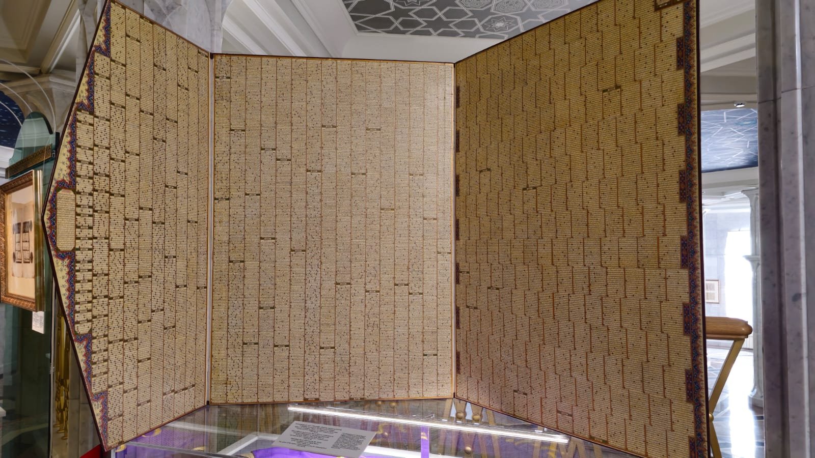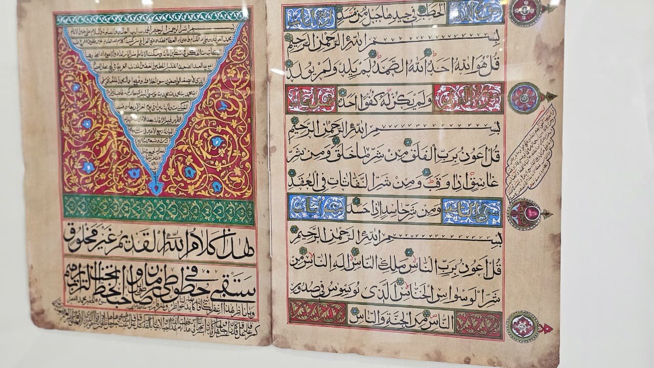 Изюминка выставки — дар муфтия Татарстана Камиля Самигуллина: полный мусхаф Корана на одном листе. При внимательном рассмотрении (с помощью увеличительного стекла) можно прочитать все аяты.