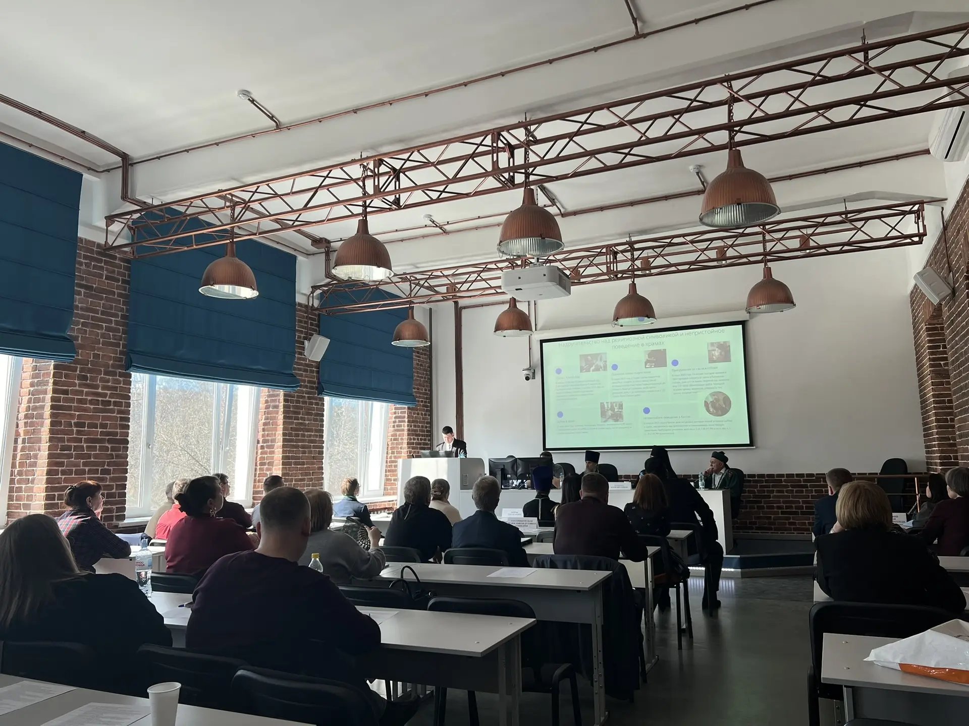 Далее на пленарном заседании с участием свыше 100 муниципальных служащих, религиозных деятелей, ученых, преподавателей и студентов слушали и обсуждали научные доклады, посвященные животрепещущим вопросам современного российского общества через призму через призму светского и религиозного мировоззрений.