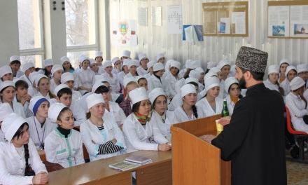 встреча заммуфтия Ставропольского края Аслана Шаманова со студентами ВУЗа. Тема лекции была посвящена духовному воспитанию молодого поколения.