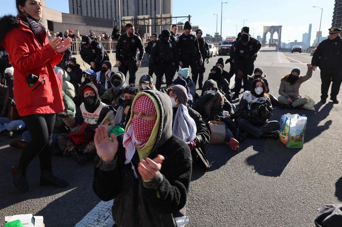В понедельник пропалестинские демонстранты перекрыли несколько мостов и тоннель в Нью-Йорке, требуя прекращения огня, передает Arab News. Десятки сторонников Палестины сели на дорожное полотно Бруклинского, Манхэттенского и Вильямсбургского мостов, перекрыв дорожное движение, а также заблокировали Голландский тоннель, соединяющий Нью-Йорк и Нью-Джерси.